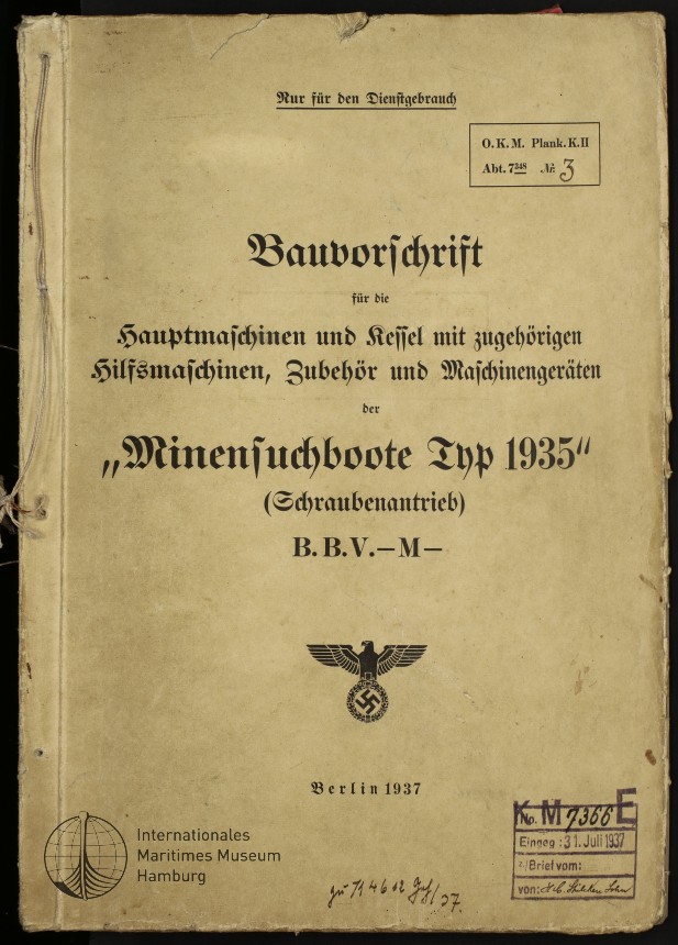 Bauvorschrift für die Hauptmaschinen und Kessel mit zugehörigen Hilfsmaschinen, Zubehör und Maschinengeräten der „Minensuchboote Typ 1935“ (Schraubenantrieb)