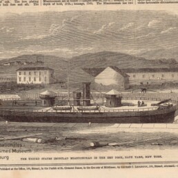 The United States ironclad ‚Miantonomah‘ in the dry dock, navy yard, New York