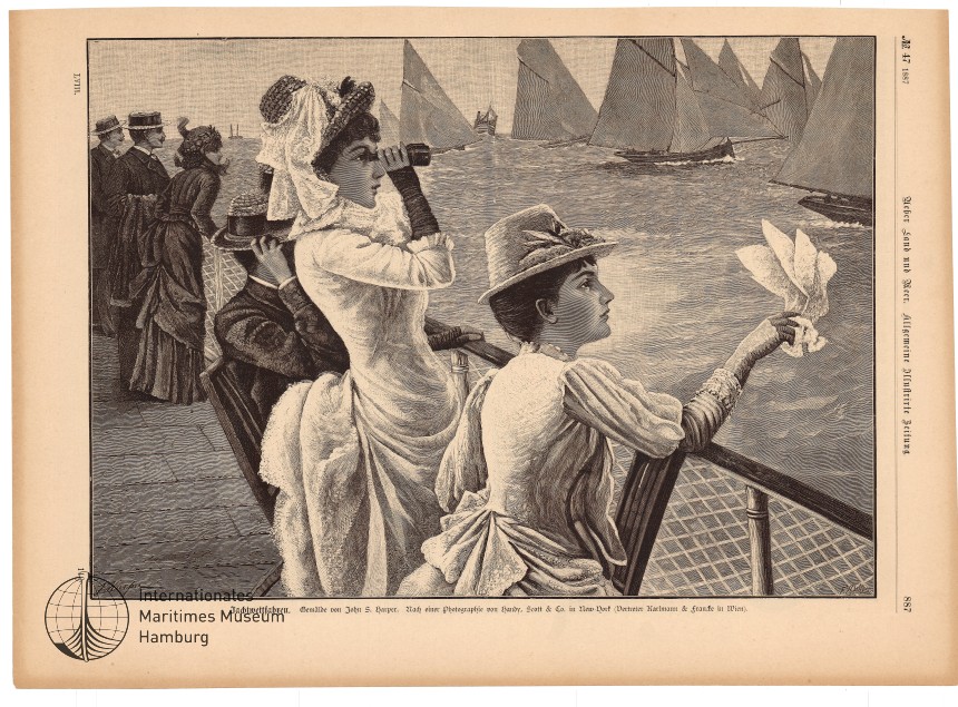 Yachtwettfahren, Gemälde von John S. Harper, Nach einer Photographie von Hardy, Scott & Co. In New York (Vertreter Karlmann & Francke in Wien)