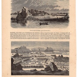 oben: Vue de l’ile de Bréhat, prise du Port-Clos; unten: Vue de l’atelier des traveaux au moment de la vérification des pierres dans les chantiers de l’ile de Bréhat